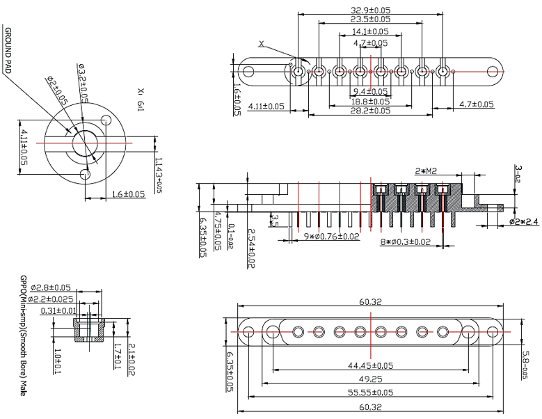 ![]() | 型號:SCGP8-J8MD 描述:GPPO(Mini-SMP)(公)端接連接器,8通道,配接PCB, DC-40GHz 阻抗:50Ω |