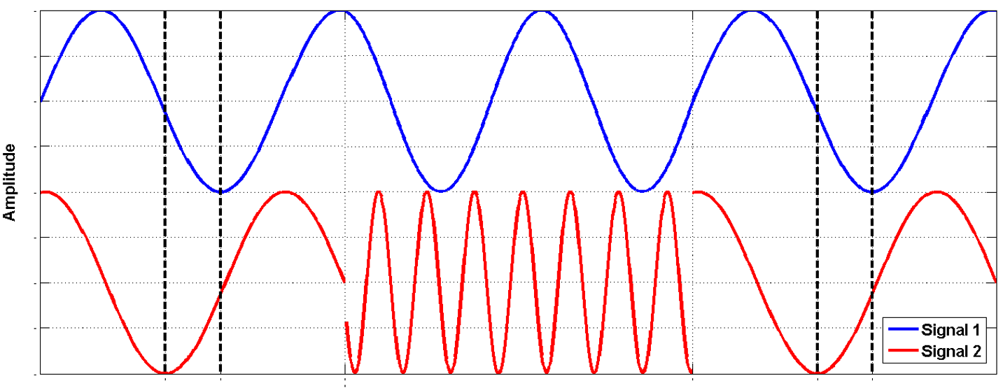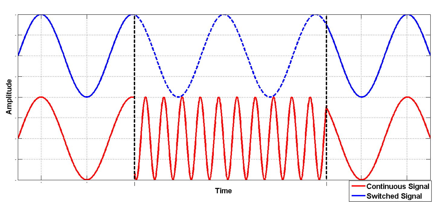 相參切換功能(選件PHS):通道1和通道2(信號1和信號2)之間的相對相位在通道2暫時切換到不同頻率后保持不變