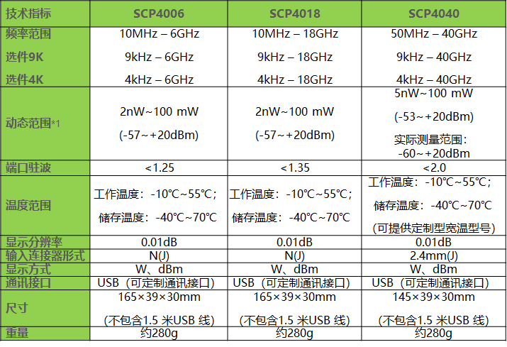 SCP4018:頻率輸入范圍10MHz~18GHz連續波平均功率計;