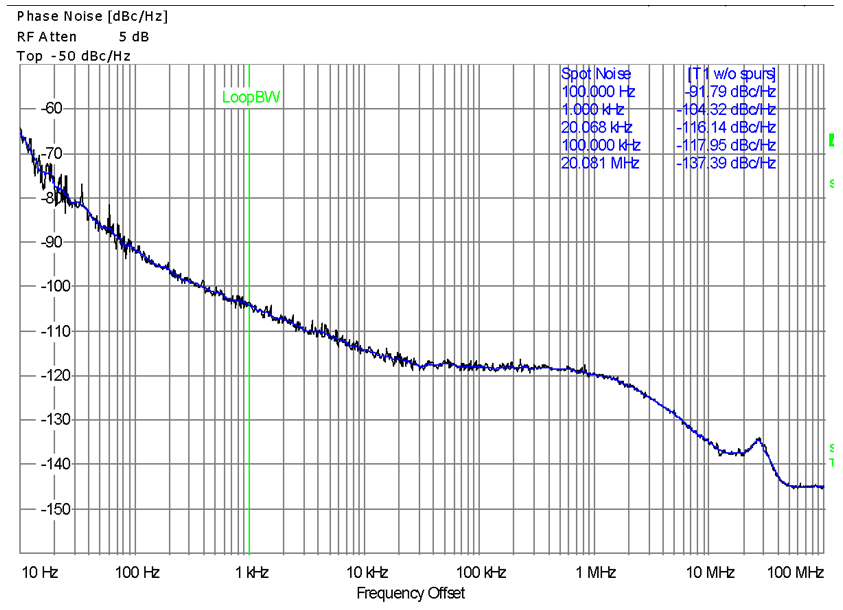 @ 20 kHz,來自載波 | -130 dBc/Hz | 參見測得相位噪聲曲線圖 | ||