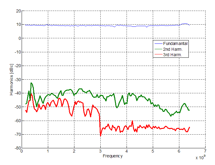 輸出諧波 | -40 dBc | -30 dBc | Pout=+10 dBm; | |