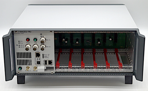 ?FlexDDS-NG Rack:系統控制機箱平臺,該平臺集成了千兆以太網計算機接口和電源。單個機箱最多可容納6個獨立的射頻發生器板卡;