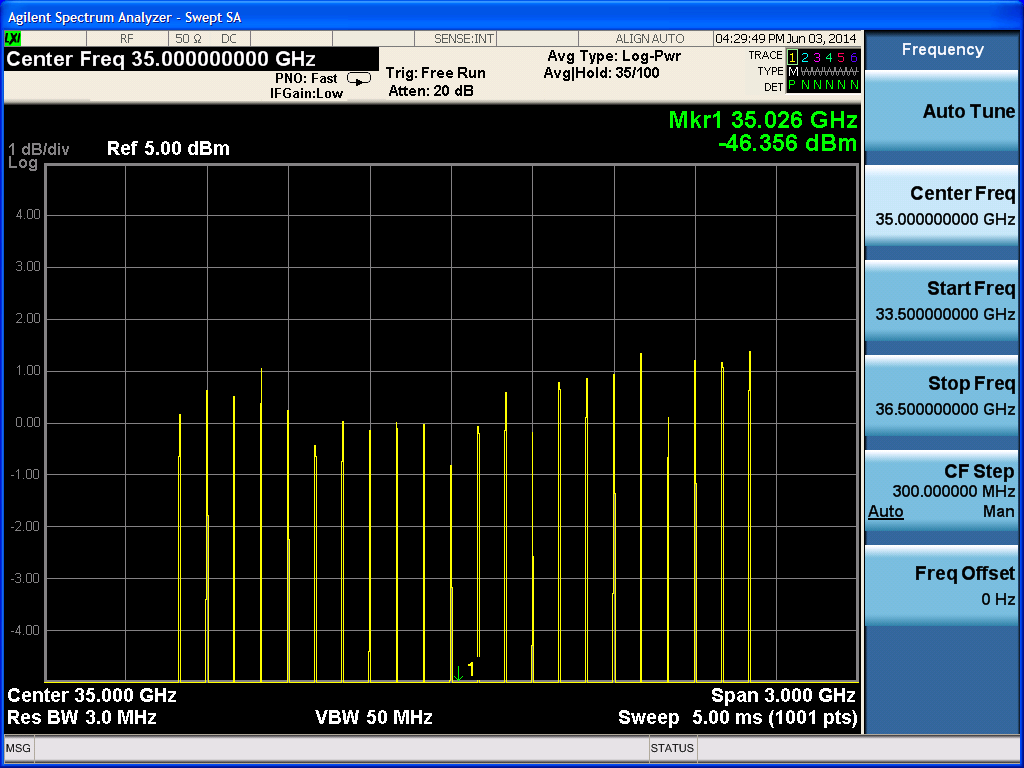 圖1 35GHz載波輸出信號平坦度(<3dB)